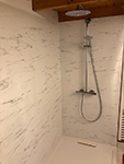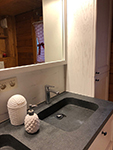 De gloednieuwe badkamer is in een strak design, van hoge kwaliteit en voorzien van een wc, twee lavabo’s, voldoende kastruimte, centrale verwarming met handdoekverwarmer en een grote regendouche. In de badkamer bevindt zich ook een EHBO kit.