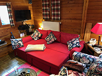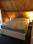 Ook deze kamer beschikt over een terras, dat uitgeeft op de voorzijde van de chalet. Het terras aan deze kamer heeft uitzicht op de voorkant van de chalet. Als de luiken gesloten zijn is de slaapkamer volledig verduisterd.