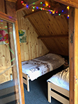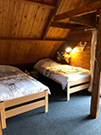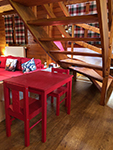 De 2e slaapkamer boven heeft 2 eenpersoonsbedden en een speelhoek voorzien van een knusse zitzak, tafeltje en 2 stoeltjes en een DVD speler met kinder DVD’s.